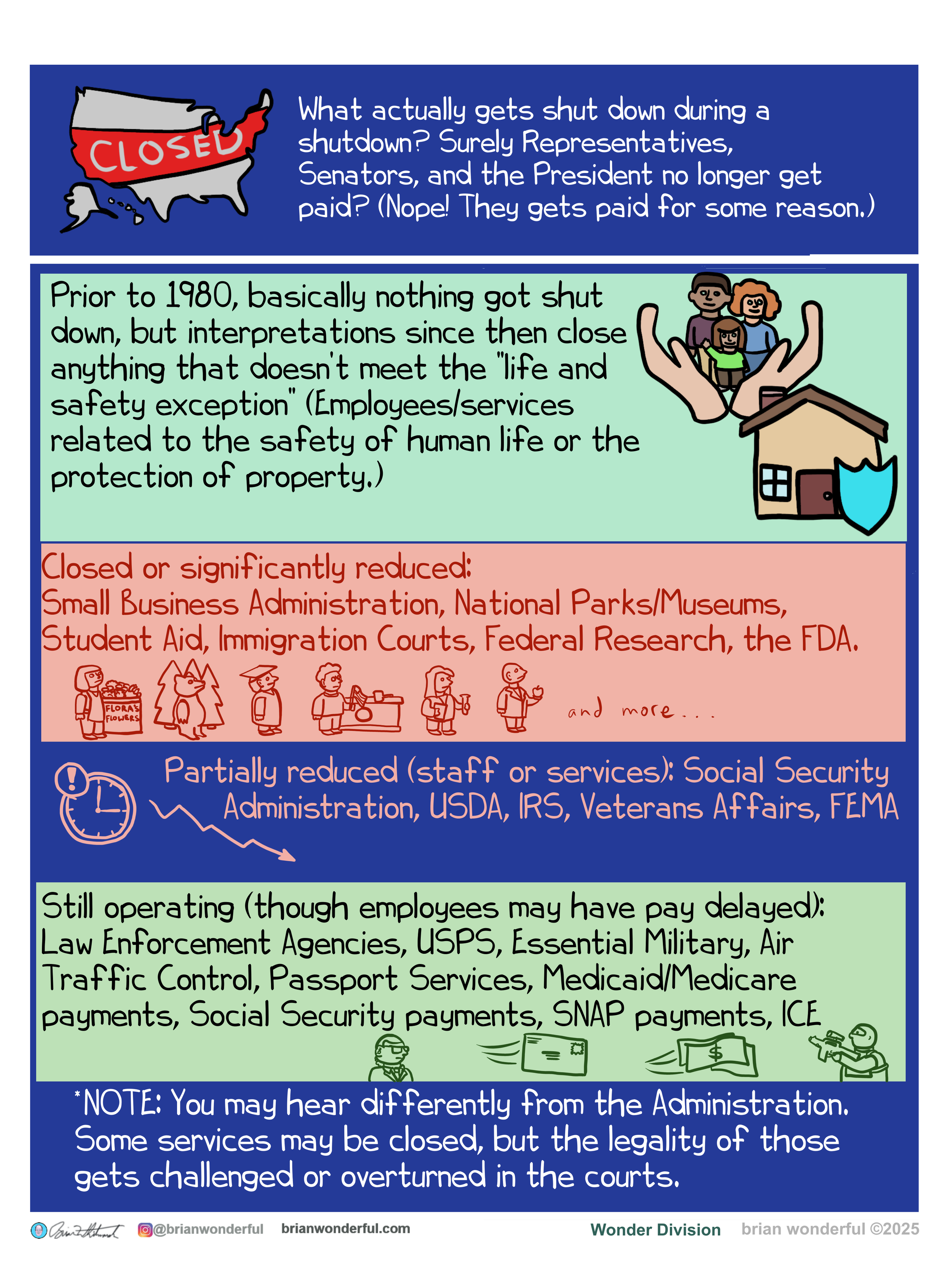 Government Shutdowns comicsgovernmentcivics Nov 10 Written By Brian Whitmarsh If you want to support my work, I accept donations at Ko-fi: You can also support me by following me and liking my comics on socials (links above)! comicsgovernmentcivicspolitics Brian Whitmarsh